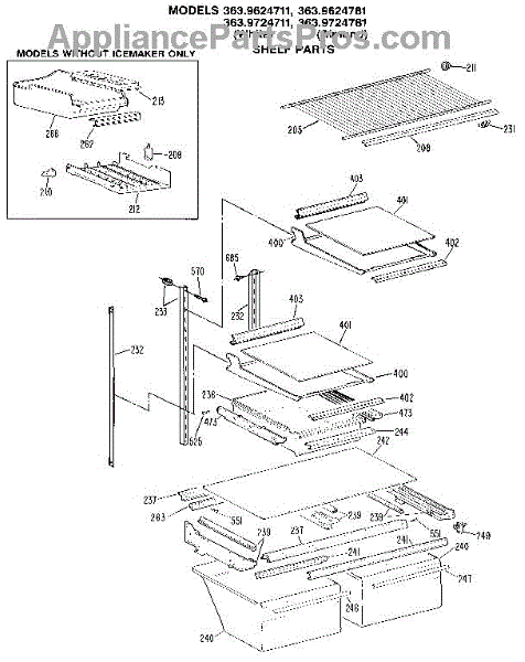 Parts for Kenmore 363.9624711 (3639624711, 363 9624711): Shelf Parts
