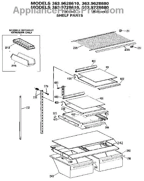 Parts for Kenmore 363.9628680 (3639628680, 363 9628680): Shelf Parts