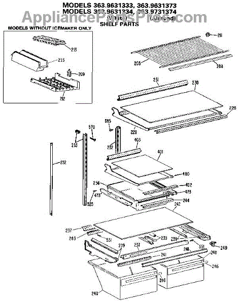 Parts for Kenmore 363.9631333 (3639631333, 363 9631333): Shelf Parts