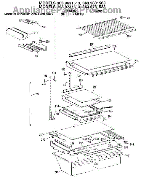 Parts for Kenmore 363.9631513 (3639631513, 363 9631513): Shelf Parts