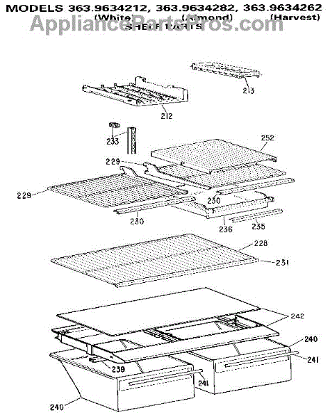 Parts for Kenmore 363.9634212 (3639634212, 363 9634212): Shelf Parts