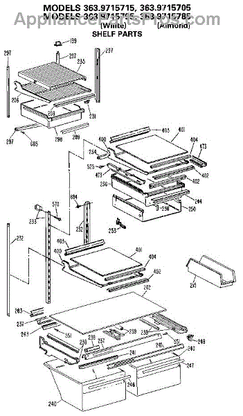 Parts for Kenmore 363.9715705 (3639715705, 363 9715705): Shelf Parts
