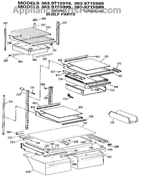 Parts for Kenmore 363.9715909 (3639715909, 363 9715909): Shelf Parts