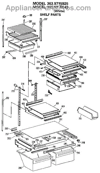 Parts for Kenmore 363.9715945 (3639715945, 363 9715945): Shelf Parts