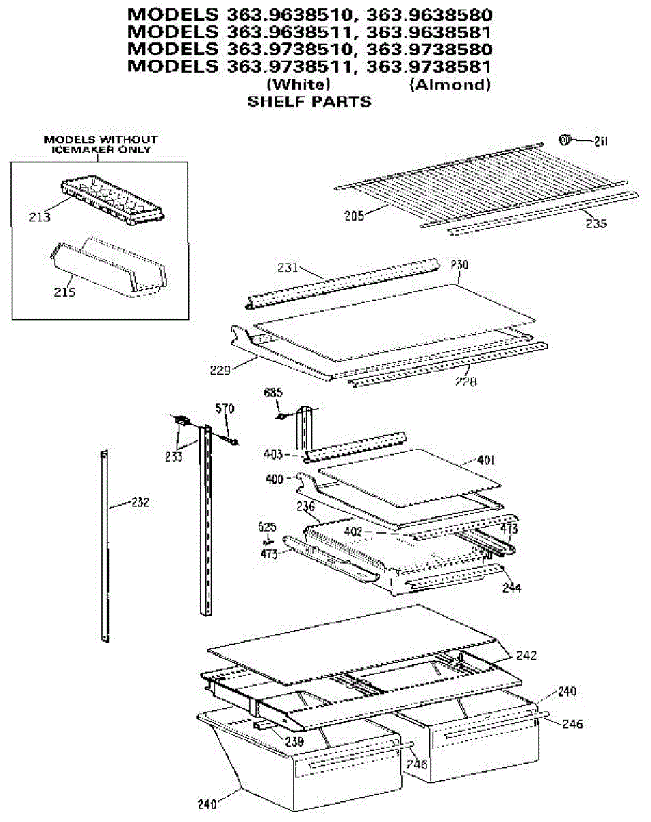 Parts for Kenmore 363.9738580 (3639738580, 363 9738580): Shelf Parts