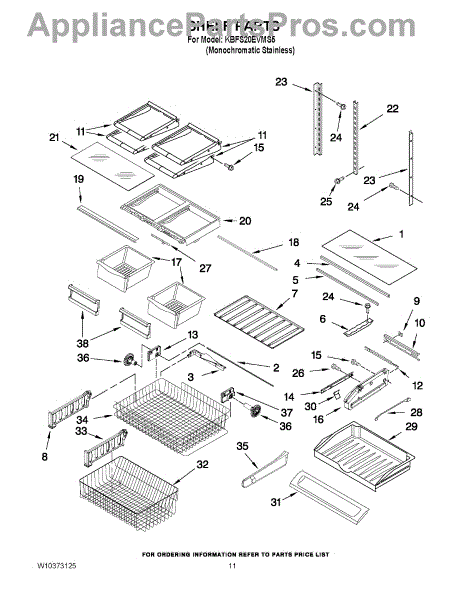 Note: For the left-hand side Pantry Drawer Support, order part number WP12656105.
