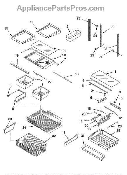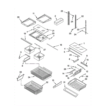 Parts for Kitchenaid KBFS25ETBL11: Shelf Parts