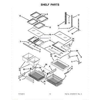 This shelf trim is the front-facing trim piece that secures and finishes a refrigerator shelf, restoring a clean, supported edge and helping keep items from sliding forward. It's a direct-fit replacement for a worn or broken trim. What it does: