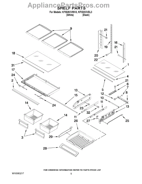 Note: For the left-hand side Pantry Drawer Support, order part number WP12656105.