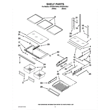 The Shelf Frame is an OEM part for Whirlpool refrigerators. It supports the glass or wire shelves, providing a stable platform for storing food and beverages inside the refrigerator. The shelf frame measures approximately 32 by 19 inches.