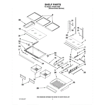 The Shelf Frame is an OEM part for Whirlpool refrigerators. It supports the glass or wire shelves, providing a stable platform for storing food and beverages inside the refrigerator. The shelf frame measures approximately 32 by 19 inches.