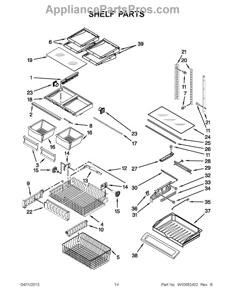 The Shelf Frame is an OEM part for Whirlpool refrigerators. It supports the glass or wire shelves, providing a stable platform for storing food and beverages inside the refrigerator. The shelf frame measures approximately 32 by 19 inches.