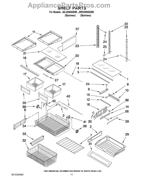 Note: For the left-hand side Pantry Drawer Support, order part number WP12656105.