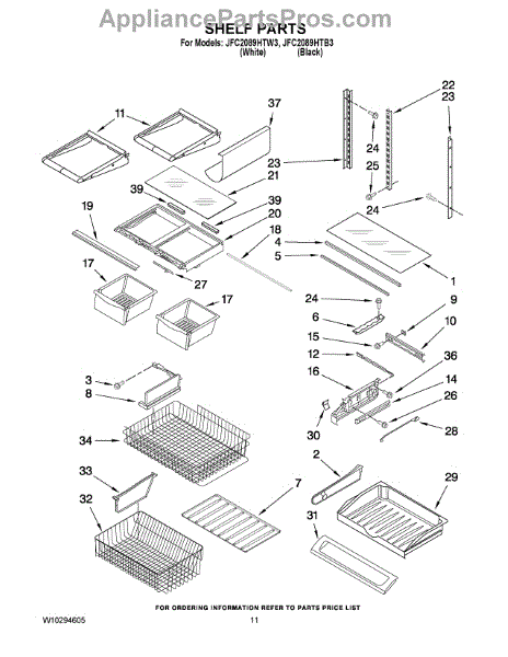 Note: For the left-hand side Pantry Drawer Support, order part number WP12656105.