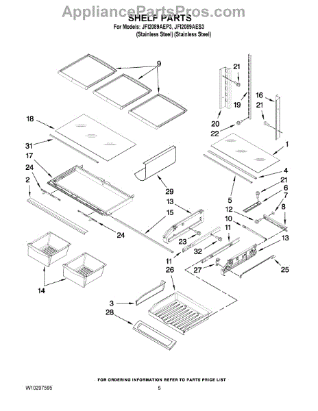 Note: For the left-hand side Pantry Drawer Support, order part number WP12656105.