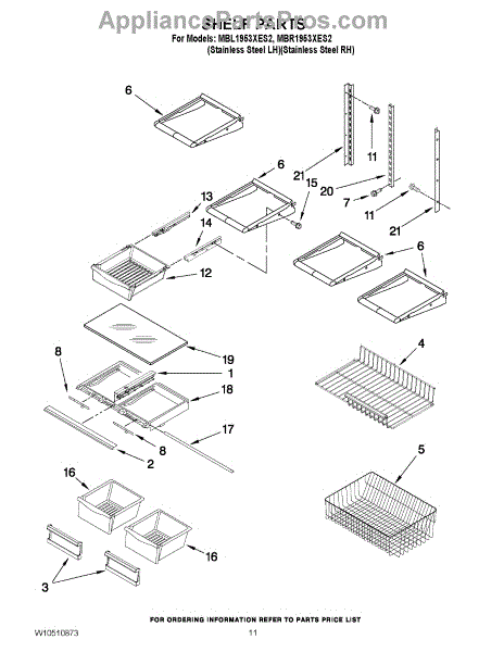 Note: For the right side drawer glide, use part number WP67001053