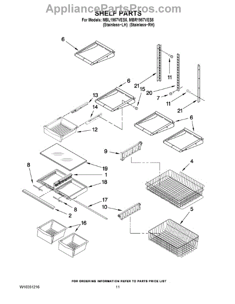 Note: For the right side drawer glide, use part number WP67001053