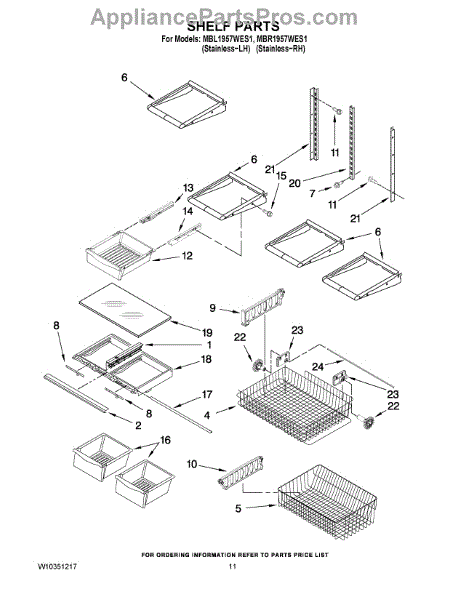 Note: For the right side drawer glide, use part number WP67001053