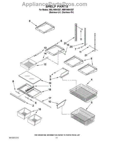 Note: For the right side drawer glide, use part number WP67001053