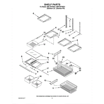 Note: For the right side drawer glide, use part number WP67001053