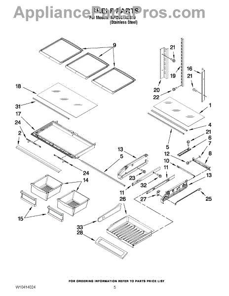 Note: For the left-hand side Pantry Drawer Support, order part number WP12656105.