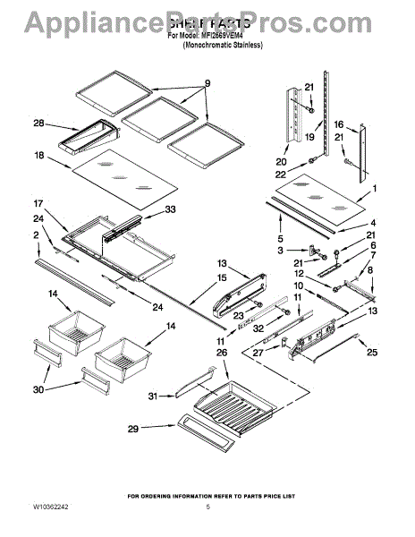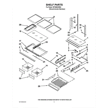 The Shelf Frame is an OEM part for Whirlpool refrigerators. It supports the glass or wire shelves, providing a stable platform for storing food and beverages inside the refrigerator. The shelf frame measures approximately 32 by 19 inches.