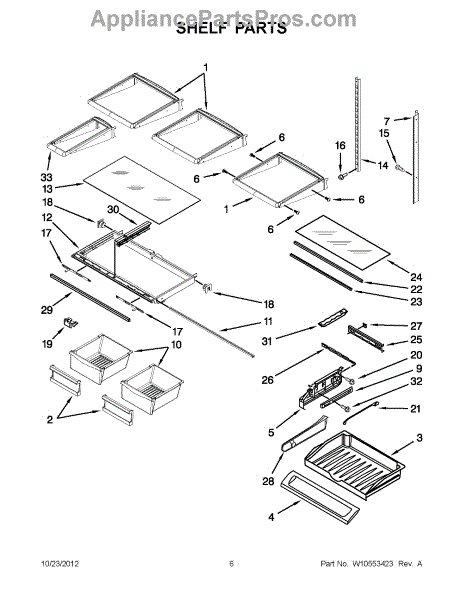 The Shelf Frame is an OEM part for Whirlpool refrigerators. It supports the glass or wire shelves, providing a stable platform for storing food and beverages inside the refrigerator. The shelf frame measures approximately 32 by 19 inches.