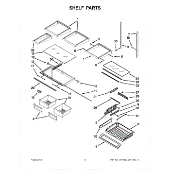 The Shelf Frame is an OEM part for Whirlpool refrigerators. It supports the glass or wire shelves, providing a stable platform for storing food and beverages inside the refrigerator. The shelf frame measures approximately 32 by 19 inches.