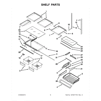 The Shelf Frame is an OEM part for Whirlpool refrigerators. It supports the glass or wire shelves, providing a stable platform for storing food and beverages inside the refrigerator. The shelf frame measures approximately 32 by 19 inches.