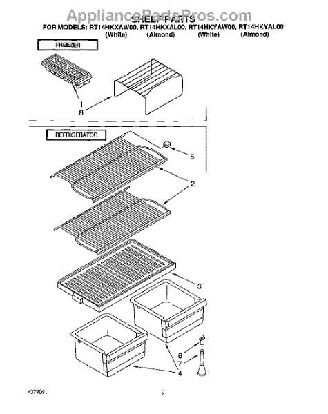Parts for Roper RT14HKYAW00: 05 - Shelf Parts