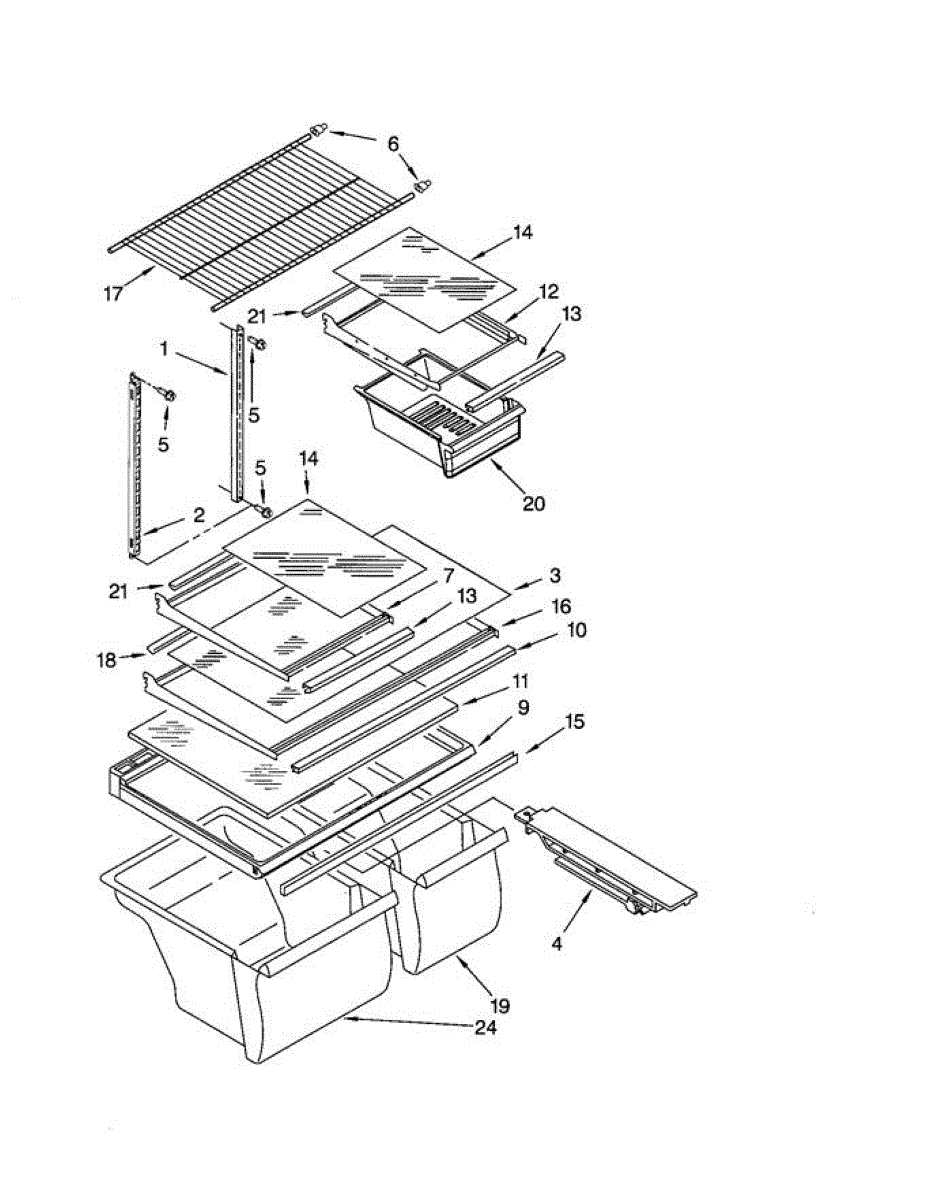 Clear glass shelf that sits above the crisper drawers in your refrigerator. Replace if cracked, shattered, or broken during cleaning or use.