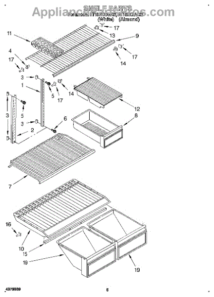 Parts for Roper RT18DKXAW02: 04 - Shelf Parts