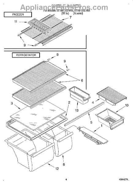 Parts for Roper RT18HDXDN05: 03 - Shelf Parts