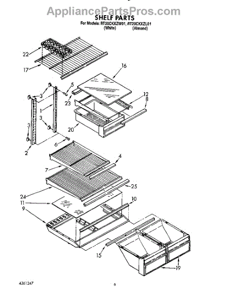 Parts for Roper RT20CKXZW01: 05 - Shelf Parts