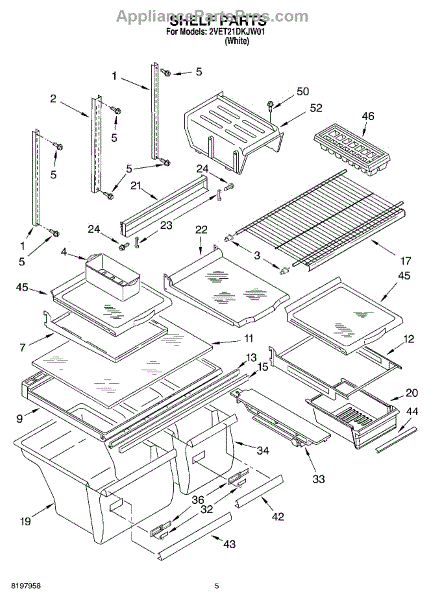 Parts for Whirlpool 2VET21DKJW01: 03 - Shelf Parts