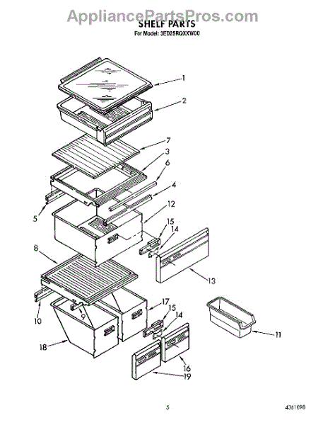 Parts for Whirlpool 3ED25RQXXW00: 05 - Shelf Parts