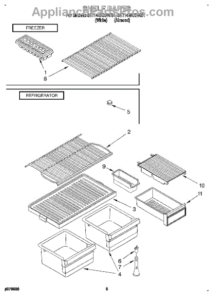 Parts for Whirlpool 3ET14GKXBW01: 05 - Shelf Parts