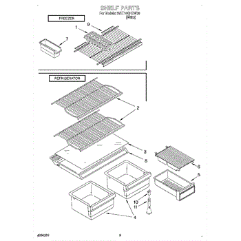 This wire shelf restores a stable, level storage surface in the refrigerator compartment. Replace a bent, rusted, or missing shelf to improve organization and maintain usable space.