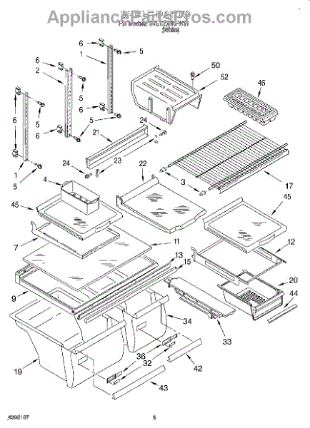 This genuine shelf assembly replaces a damaged or cracked refrigerator cabinet shelf to restore stable storage and keep items organized. It fits original mounting points for a secure, flush installation. What it does: