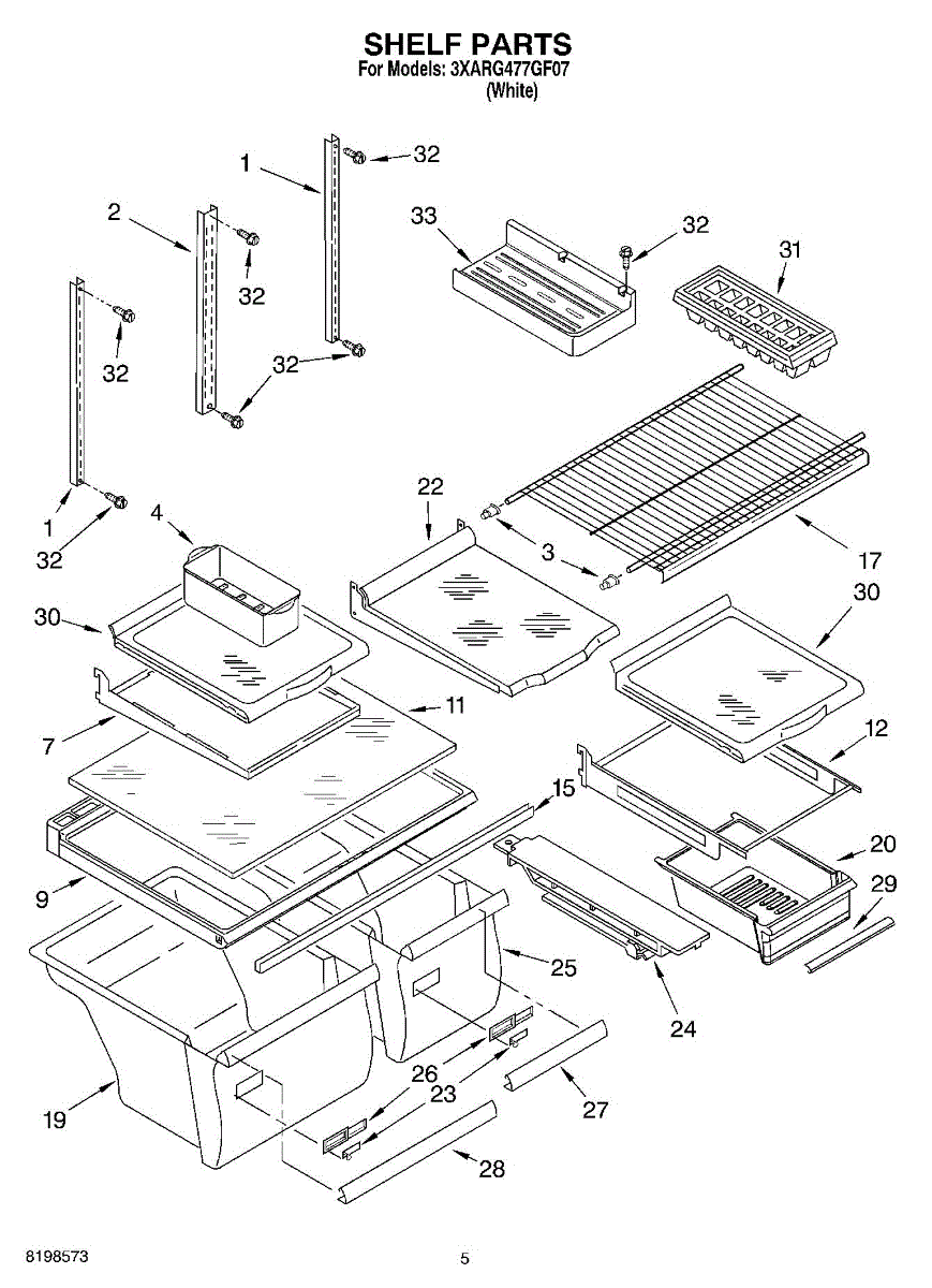 Replace a cracked, broken, or missing refrigerator cabinet shelf. This assembly restores stable storage space and fits securely into original mounting points.