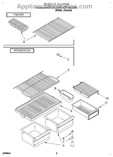Parts for Whirlpool 4ET14GKXBN01: 05 - Shelf Parts