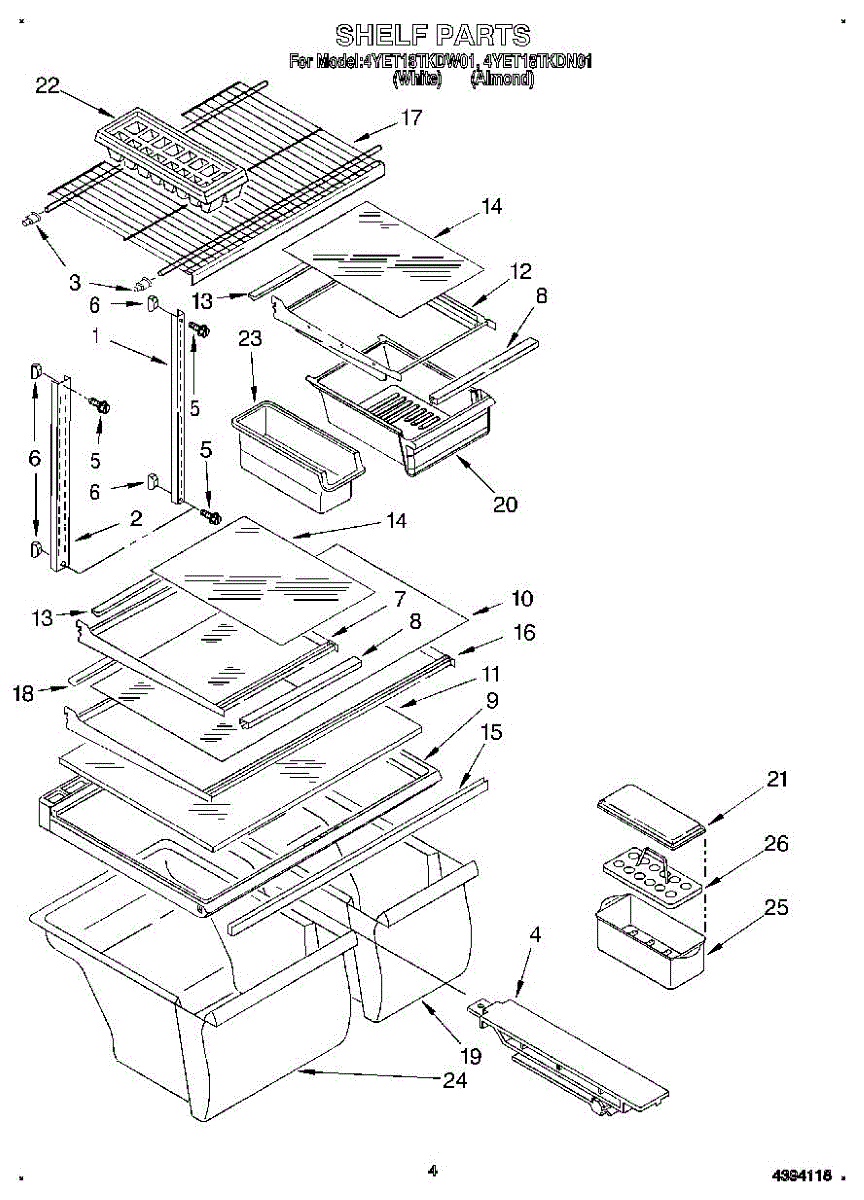Replace a cracked, broken, or missing refrigerator cabinet shelf. This assembly restores stable storage space and fits securely into original mounting points.