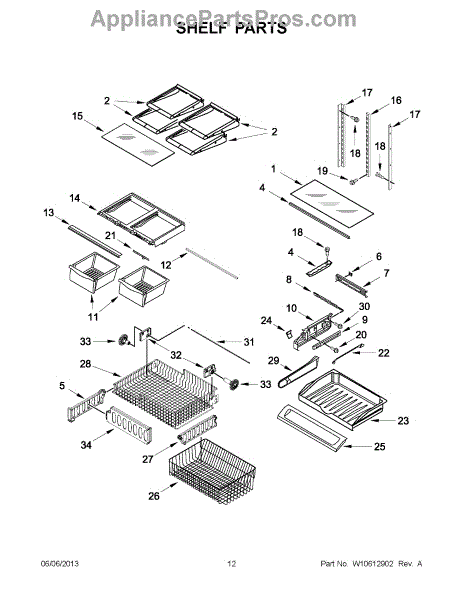 Note: For the left-hand side Pantry Drawer Support, order part number WP12656105.