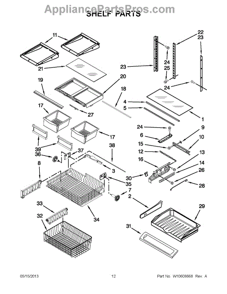 Note: For the left-hand side Pantry Drawer Support, order part number WP12656105.