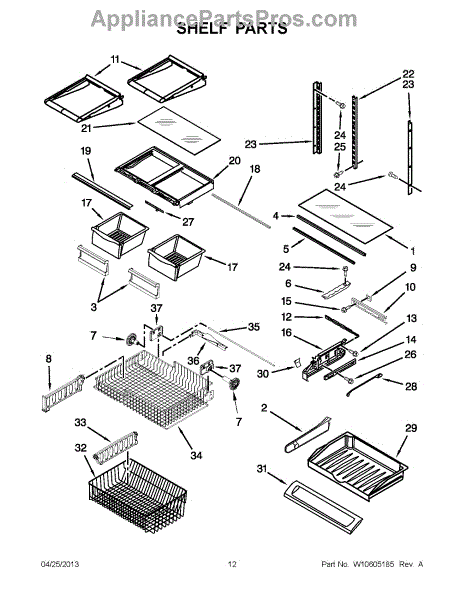 Note: For the left-hand side Pantry Drawer Support, order part number WP12656105.