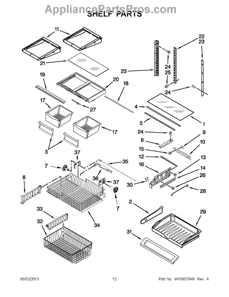 Note: For the left-hand side Pantry Drawer Support, order part number WP12656105.