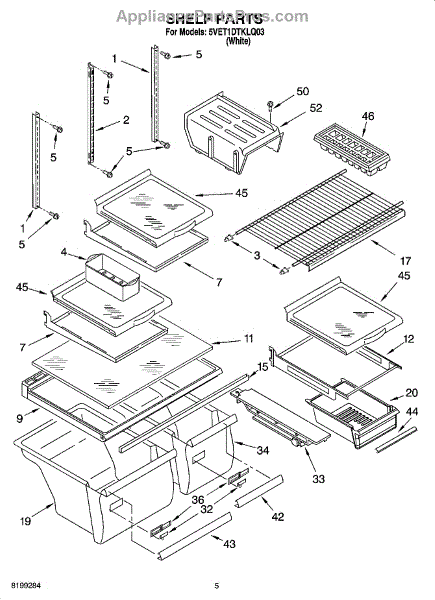 Parts for Whirlpool 5VET1DTKLQ03: 03 - Shelf Parts