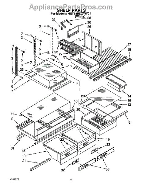 Parts for Whirlpool 6ET18RKXYW01: 05 - Shelf, Lit / Optional Parts
