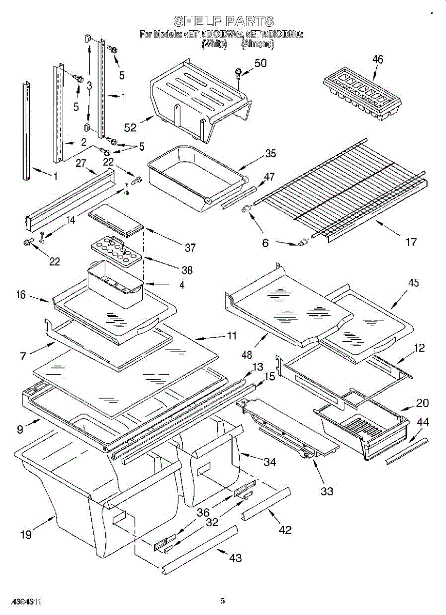 Replace a cracked, broken, or missing refrigerator cabinet shelf. This assembly restores stable storage space and fits securely into original mounting points.