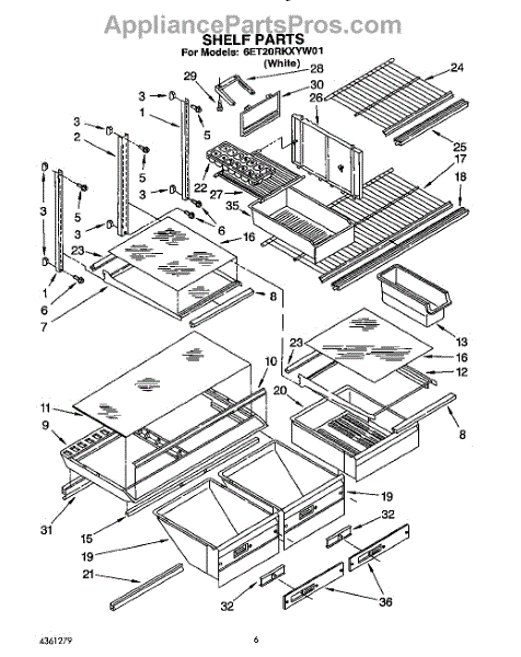 Parts for Whirlpool 6ET20RKXYW01: 05 - Shelf, Lit / Optional Parts